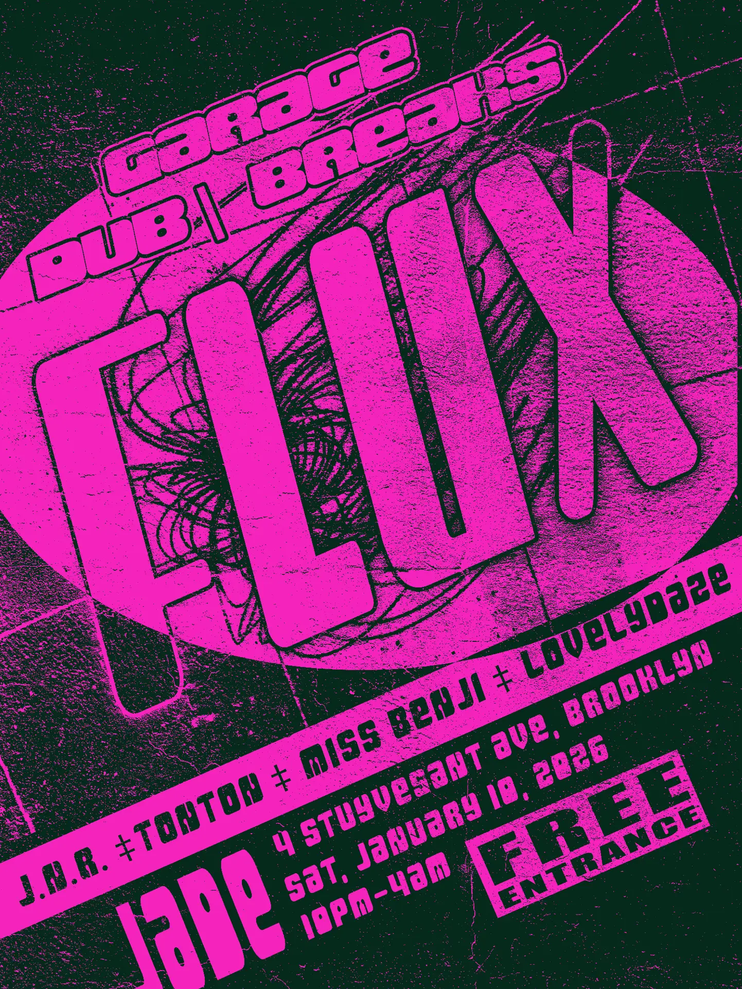 Flux offers a raw, authentic UK garage experience focused on deep cuts, dubplates, and rolling basslines. There is no one voice to look out for, event founder Tonton has assembled a lineup of heavy-hitters who each bring their own flavor to the decks.